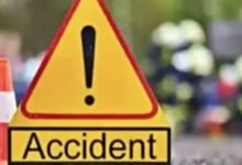 टायर फटने से सड़क किनारे बाउण्ड्री वाल से टकराया ट्रेलर ट्रक,बड़ा हादसा टला
