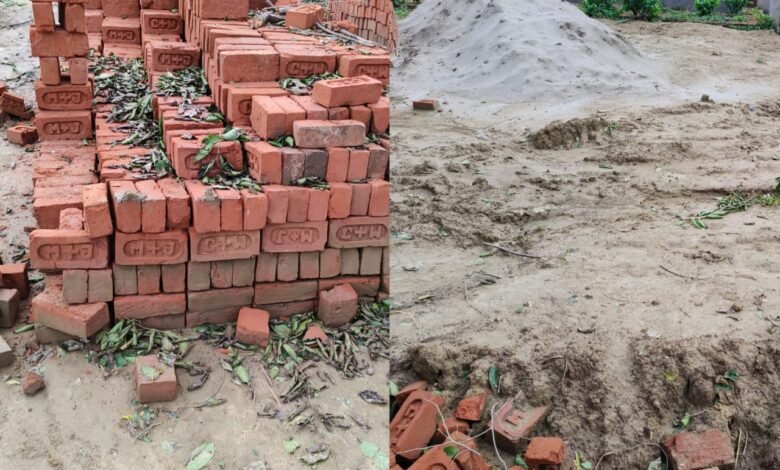 योगी राज में गौशाला निर्माण में भ्रष्टाचार, घटिया ईंटें और सफेद बालू से हो रहा बाउंड्री वॉल का निर्माण