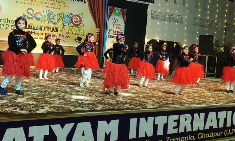 जमानियाँ (गाजीपुर)। स्थानीय नगर के कस्बा बाजार स्थित अग्रणी शिक्षण संस्थान सत्यम इण्टरनेशनल स्कूल में शनिवार को वार्षिकोत्सव “स्पर्धा 2025” सहित विज्ञान प्रदर्शनी, मेला व मेगा मैजिक शो उत्साहपूर्वक एवं धूमधाम से मनाया गया। जिसमें बच्चों ने वैज्ञानिक सोच, रचनात्मकता और समस्या-समाधान सहित पर्यावरण, सौर ऊर्जा, जल संरक्षण, रोबोटिक्स जैसे विषयों पर इंटरैक्टिव और कार्यात्मक मॉडल बनाकर अपनी प्रतिभा को दर्शाया तथा सभी को जिज्ञासु बनने और नवाचार सीखने का अवसर प्रदान किया तथा