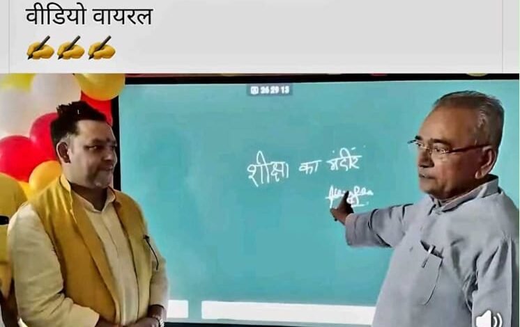 उनके साथ मंच पर गाजीपुर लोकसभा के पूर्व प्रत्याशी पारस नाथ राय भी खड़े हैं, जो बच्चों को उसी गलत लिखे हुए शब्द का महत्व समझा रहे हैं। यह वही पारस नाथ राय हैं, जो लोकसभा चुनाव के दौरान खुद को “चाणक्य का शिष्य” बताते हुए अपने प्रतिद्वंद्वियों पर तीखे कटाक्ष करके सोशल मीडिया पर चर्चित रहे थे। जब उनके सामने ‘शिक्षा’ की जगह ‘शीक्षा’ और ‘मंदिर’ की जगह ‘मंदीर’ लिखा गया, तब उनका चाणक्यत्व मौन हो गया और वह उसी गलत शब्द पर ज्ञान का भाषण देने लगे। यह पोस्ट सोशल मीडिया पर जमकर वायरल हो रहा है. एक शिक्षक के सामने शिक्षा के मंदिर को भी गलत लिखे जाने के बाद अब लोगों की खूब प्रतिक्रिया भी सामने आ रही है.
