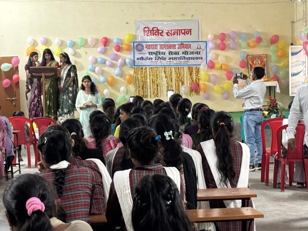 जमानियां (गाजीपुर)। क्षेत्र के ग्राम बरुइन स्थित अग्रणी शिक्षण संस्थान राजकिशोर सिंह महाविद्यालय में रविवार को राष्ट्रीय सेवा योजना के सात दिवसीय विशेष शिविर का समापन मुख्य अतिथि पूर्व प्राचार्य डॉ पंकज चौधरी, प्राचार्य डॉ एके पाण्डेय तथा प्रबंधक उपेन्द्र सिंह द्वारा मां सरस्वती के तैल चित्र पर माल्यार्पण व दीप प्रज्ज्वलित करके किया गया। स्वयंसेवक व सेविकाओं द्वारा सरस्वती वंदना, स्वागत गान, राष्ट्रगान एवं अन्य सांस्कृतिक कार्यक्रम प्रस्तुत किया गया।