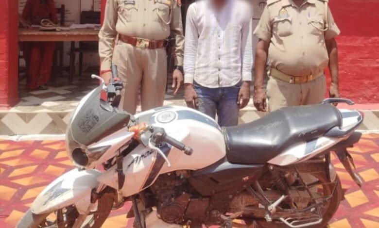 गाजीपुर। अपराधियों की धरपकड़ के लिए चलाए जा रहे अभियान के तहत दिलदारनगर थाना पुलिस को बड़ी सफलता मिली है। पुलिस ने रक्सहा बाईपास पर चेकिंग के दौरान चोरी की अपाचे आरटीआर 160 सीसी मोटरसाइकिल के साथ एक अभियुक्त को गिरफ्तार किया। उपनिरीक्षक सत्येन्द्र सिंह चंदेल मय हमराह टीम वाहन चेकिंग कर रहे थे। इस दौरान बिना नंबर की एक मोटरसाइकिल बरामद हुई। पूछताछ में वाहन चोरी की निकली, जिसका इंजन नंबर BEOKH2183958 और चेचिस नंबर MD634BE41H2K85177 पाया गया।