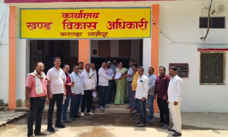 गाजीपुर। उत्तर प्रदेश ग्राम रोजगार सेवक (पंचायत मित्र) वेलफेयर एसोसिएशन के प्रांतीय आवाहन पर शुक्रवार को विकास खंड करंडा में ग्राम रोजगार सेवकों ने अपनी मांगों को लेकर हुंकार भरी। अपनी विभिन्न समस्याओं और पिछले सात माह से मानदेय न मिलने व पिछले डेढ़ वर्षों से इपीएफ का पैसा बकाया एवं लंबित मांगों के समाधान हेतु ब्लाक के समस्त रोजगार सेवकों ने 17 अप्रैल से 25 अप्रैल 2026 तक कलमबंद हड़ताल का ऐलान कर दिया है। इस दौरान विकास खंड परिसर में बड़ी संख्या में एकत्रित हुए रोजगार सेवकों ने ब्लाक अध्यक्ष शशिकांत गिरि के नेतृत्व में खंड विकास अधिकारी शुवेदिता सिंह को एक लिखित ज्ञापन सौंपते हुए कार्य बहिष्कार का अपना विरोध दर्ज कराया।