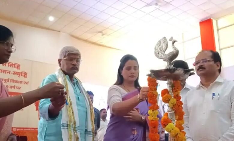 गाजीपुर। उत्तर प्रदेश सरकार के ‘‘नव निर्माण के नौ वर्ष ‘‘पूर्ण होने के अवसर पर आडिटोरियम सभागार मे जिला पंचायत अध्यक्ष सपना सिंह, नगर पालिका अध्यक्ष सरिता अग्रवाल, जिलाध्यक्ष भाजपा ओमप्रकाश राय, मण्डलायुक्त वाराणसी मण्डल वाराणसी एस. राजलिंगम मुख्य विकास अधिकारी संतोष कुमार वैश्य तथा अन्य अधिकारियों/कर्मचारियों एवं लभार्थियों की गरिमामई उपस्थिति में भव्य कार्यक्रम का आयोजन किया गया। जिसका शुभारंभ अध्यक्ष जिला पंचायत सपना सिंह एवं नगर पालिका अध्यक्ष सरिता अग्रवाल द्वारा संयुक्त रूप से दीप प्रज्ज्वलित कर किया गया।
