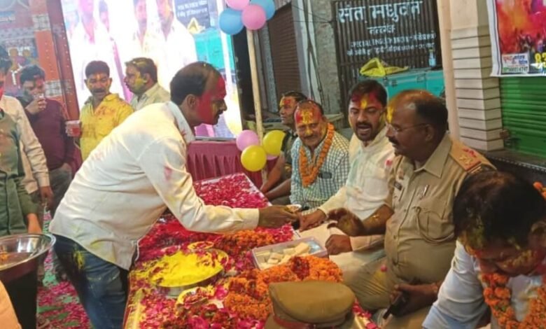 गाजीपुर। श्री शिव साई मंदिर धर्मार्थ सेवा समिति नंदगंज स्टेशन चौराहा के तत्वाधान में होली मिलन समारोह बड़े धूमधाम से मनाया गया।इसl समारोह के मुख्य अतिथि नंदगंज थानाध्यक्ष कमलेश कुमार थे। मुख्य अतिथि का माल्यार्पण कर स्वागत किया गया। बाजार के व्यापारी गण,संभ्रांत नागरिक आदि लोग उपस्थित होकर लोगो कोअबीर गुलाल लगाकर गले मिले।इसमें प्रमुख रूप से राम सेवक जायसवाल,अनिल जायसवाल,पवन गुप्ता,चंद्रकांत जायसवाल,संतोष जायसवाल,संदीप यादव ,पंकज जायसवाल, सत्या यादव,प्रमोद पांडेय,पवन जायसवाल,गंगा जायसवाल ,किशन जायसवाल अमन जायसवाल आदि लोग उपस्थित थे।