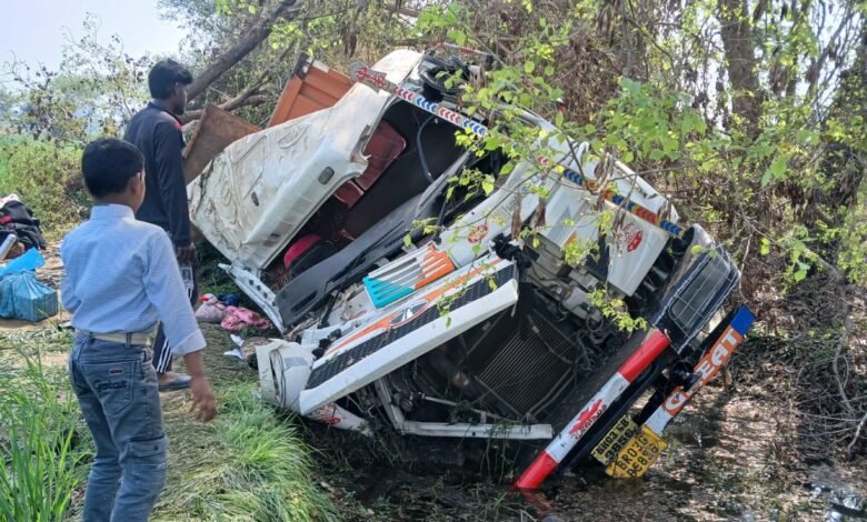 लाल बालू लदा अनियंत्रित ट्रेलर पेड़ को चीरते हुए खाई में पलटा: चालक गंभीर रूप से घायल
