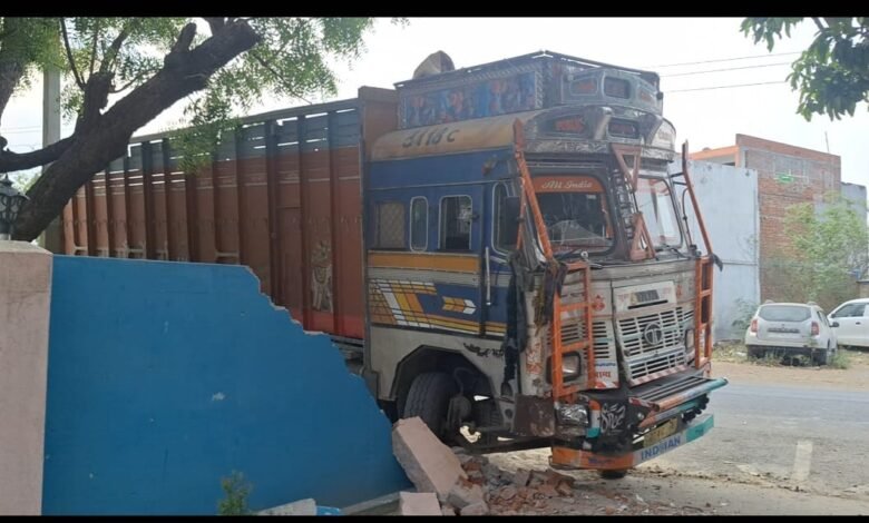 अनियंत्रित ट्रक ने तोड़ा पुलिस चौकी का बाउंड्रीवाल,बाल बाल बचा गार्ड