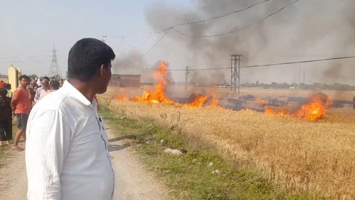 जमानियां,गाजीपुर। तहसील क्षेत्र के गड़ही गांव के सीवान में सोमवार की दोपहर करीब 3 बजे हाईवोल्टेज विद्युत लाइन के शॉर्ट सर्किट से गेहूं की खड़ी फसल में भीषण आग लग गई। इस अग्निकांड में गड़ही और बूढ़ाडीह गांव के तीन किसानों की लगभग एक बीघा फसल जलकर पूरी तरह खाक हो गई, जिससे पीड़ित किसानों को भारी आर्थिक नुकसान उठाना पड़ा है।